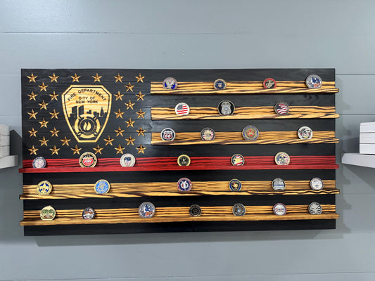 Thin Red Line FDNY Coin Display Rack Holder - Rustic American Flag